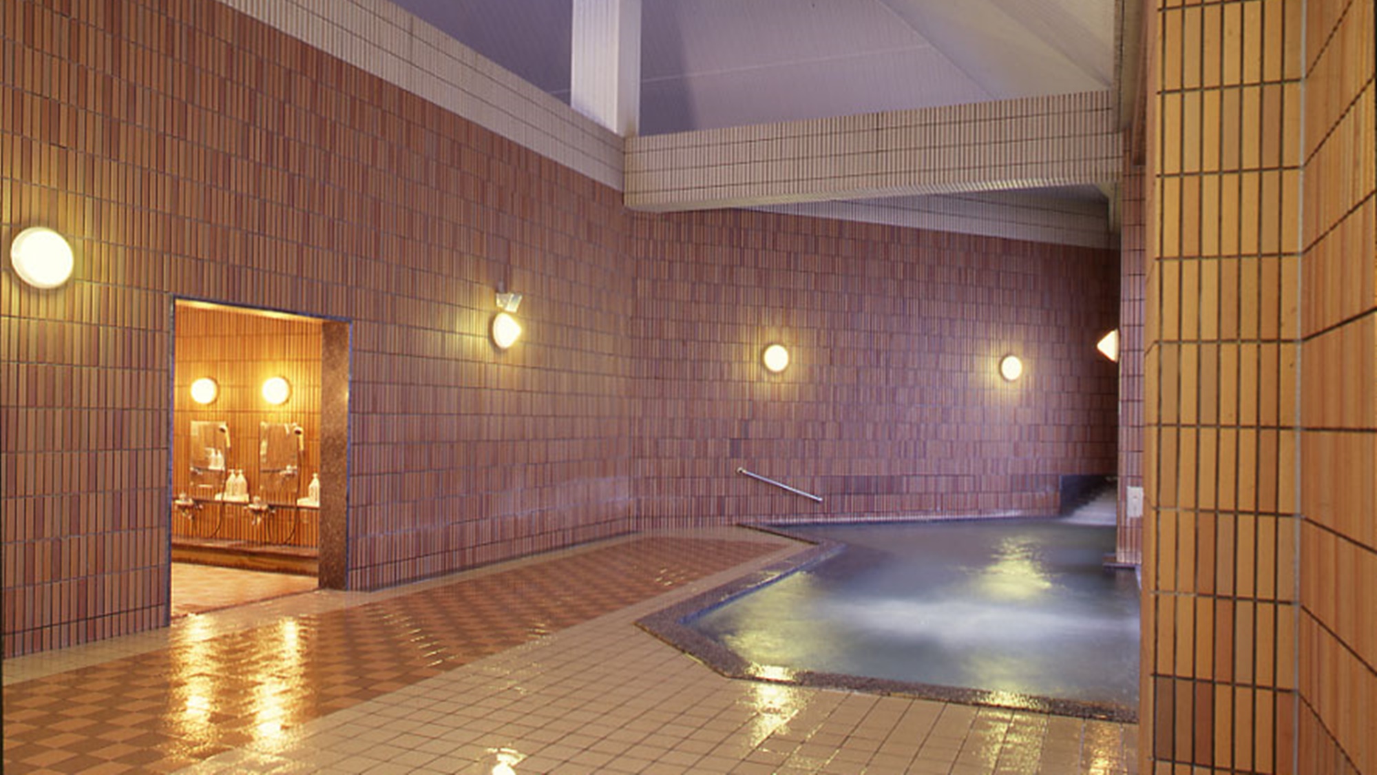一面窓ガラスの開放感のある大風呂。とても広くてのびのびとくつろぐことができます。塩っ気のあるお湯は、お風呂上がりもしばらく汗が出てきてとてもポカポカです。