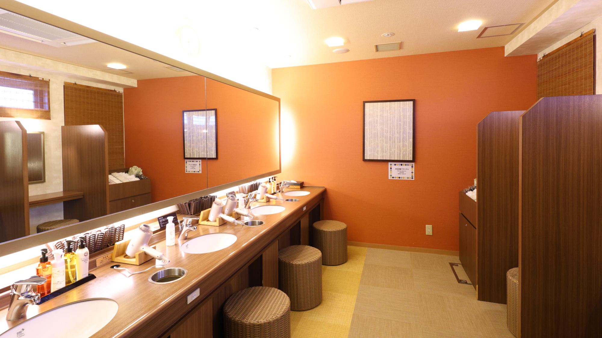 とてもきれいな脱衣所は、ロッカーとパウダースペースが隣り合わせになっていてきっちり分かれていました。しっかりスキンケアするのにちょうど良さそう。アメニティはPOLAで女性目線でも満足できる内容でした。