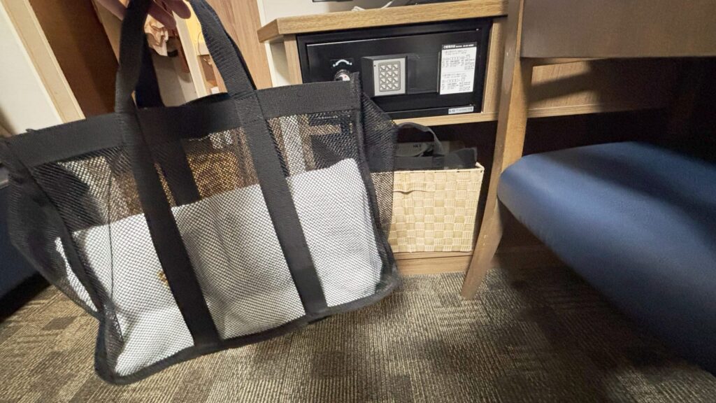 タオルセットはテレビの下のカゴの中に入ってました。こちらを持ってスパ棟へ向かいます。