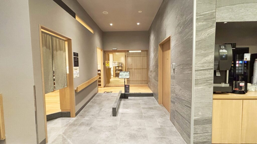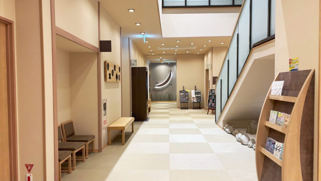 館内は和モダンな空間で、清潔感もありとても落ち着いた雰囲気です。一番奥に大浴場があります。