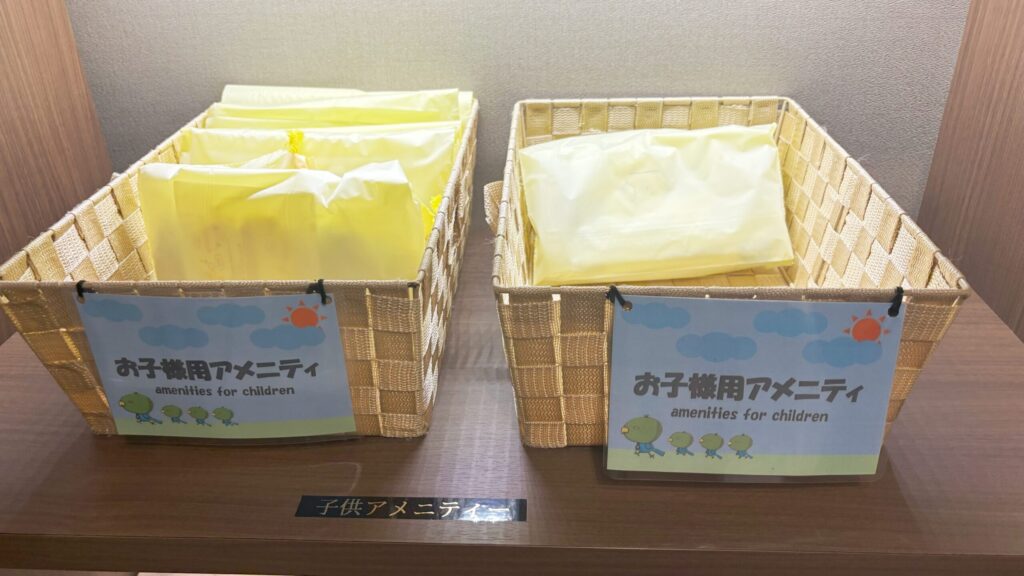 子供用のアメニティも置いてあるのが、斜め上をいくドーミーインのホスピタリティです。
