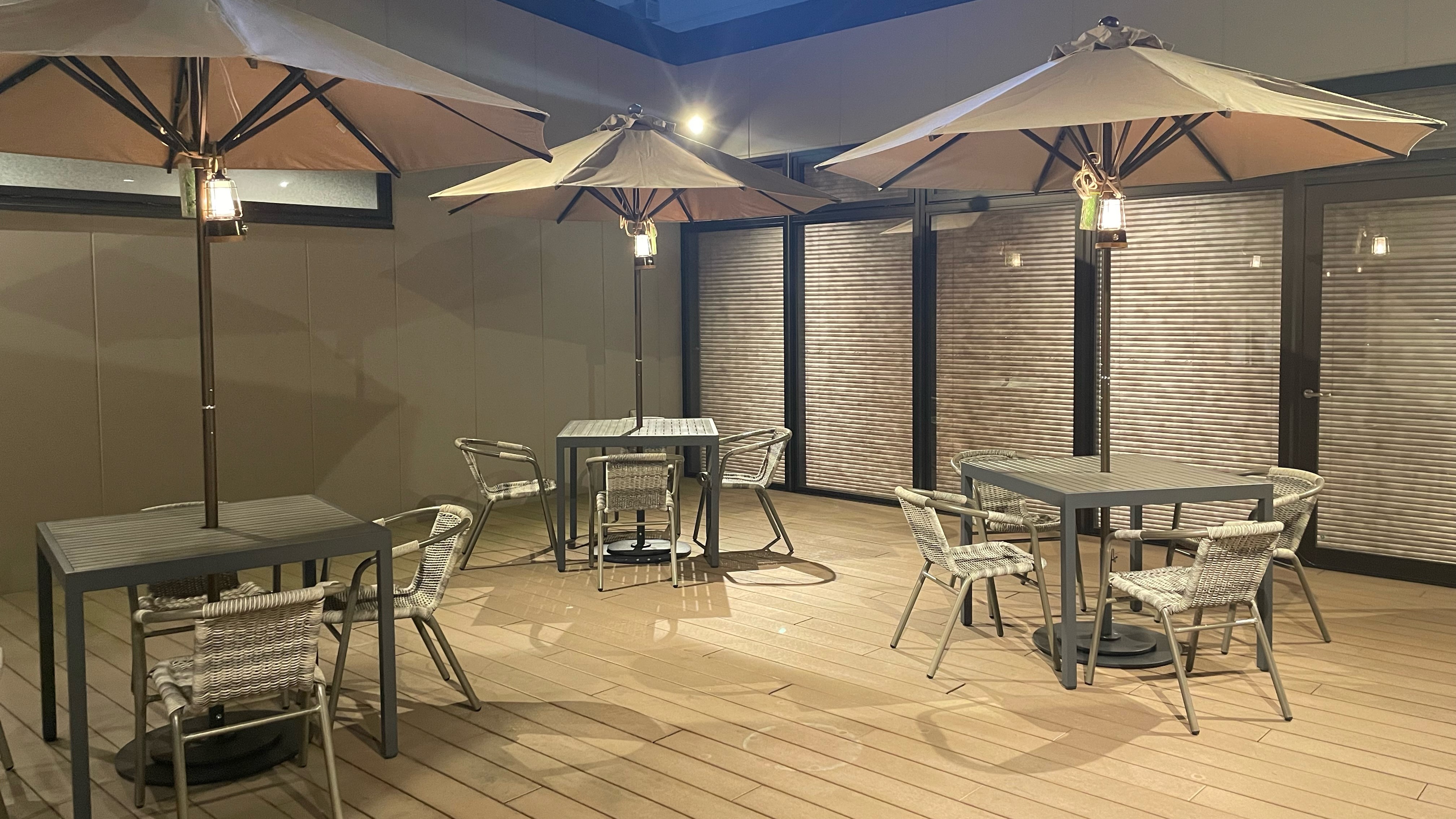 テラスの開放は、15:00~21:00、5:00~9:00とのことでした(タイミングが合わず外側からパシャリ)